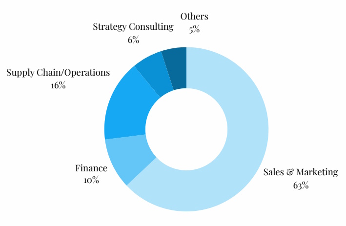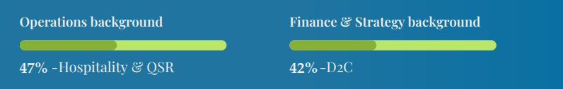 Finance & Strategy backgrounds drive D2C leadership (45 percent) – highlighting the unique demands for financial discipline and strategic business thinking in this emerging and ever evolving space where the path to profitability is the key focus today.