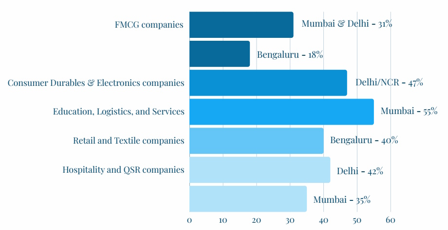 Retail and Textile companies cluster in Bangalore with 40 percent of CEOs based there, driven by its vibrant e-commerce ecosystem.